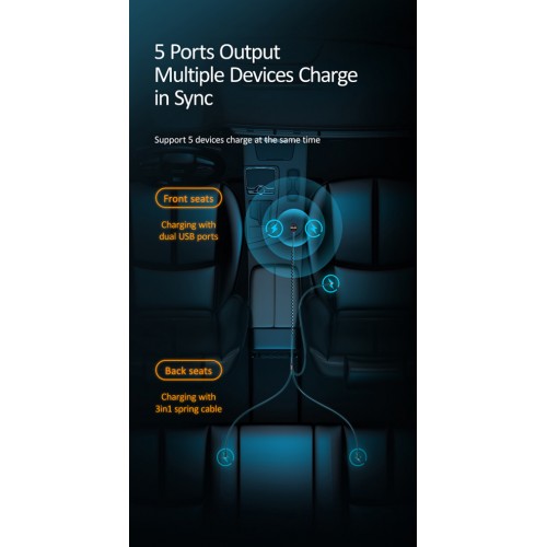 Ο φορτιστής ενσωματώνει 3 σε 1 πτυσσόμενο καλώδιο, με 3 εξόδους: Micro USB, Lightning & Type-C, μήκους 40-155cm.