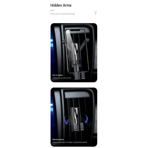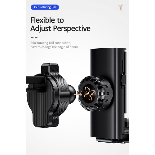 Η βάση για smartphone US-ZJ058 διαθέτει σημείο στήριξης στον αεραγωγό του αυτοκινήτου, προσφέροντας κορυφαία σταθερότητα. Ασφαλίζει το smartphone με έναν έξυπνο μηχανισμό συγκράτησης, ο οποίος λειτουργεί με την τοποθέτηση του κινητού. Τα μετακινούμενα πτερύγια της βάσης είναι επενδυμένα από αντιολισθητικό, μαλακό υλικό, ώστε να βελτιώνεται το επίπεδο συγκράτησης, αποτρέποντας τις γρατσουνιές από την χρήση. Τα πτερύγια ανοίγουν μόλις τοποθετηθεί το τηλέφωνο στην συσκευή και κλείνουν μόλις αυτό αφαιρεθεί. Η βάση είναι μικρή και διακριτική και ο μηχανισμός της επιτρέπει την καλή ροή του αέρα όταν δεν υπάρχει τηλέφωνο στην βάση. Η βάση διαθέτη ειδική υποδοχή που επιτρέπει καλώδιο φόρτισης όσο το κινητό βρίσκεται πάνω στην βάση.