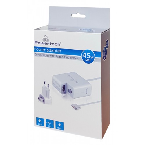 POWERTECH τροφοδοτικό laptop PT-836 για Apple Macbooks, 45W, λευκό