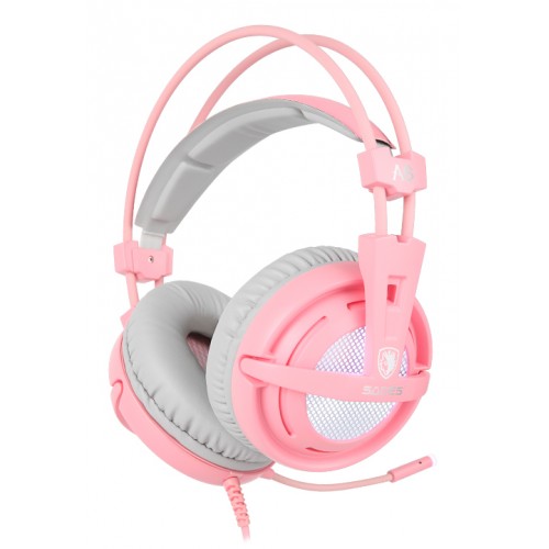 SADES Gaming Headset A6, multiplatform, USB, LED, ροζ