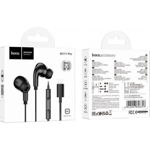 Hands Free Hoco M111 Pro Primero Series Earphones Stereo Lightning Μαύρο 1