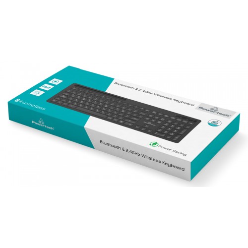 POWERTECH ασύρματο πληκτρολόγιο PT-934, Bluetooth 5.0 & 2.4GHz, μαύρο