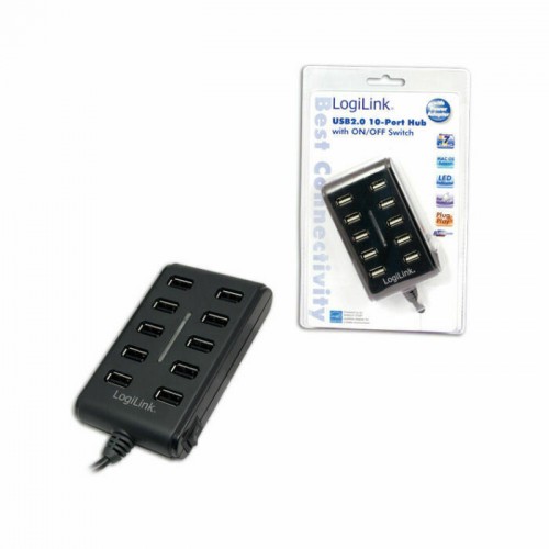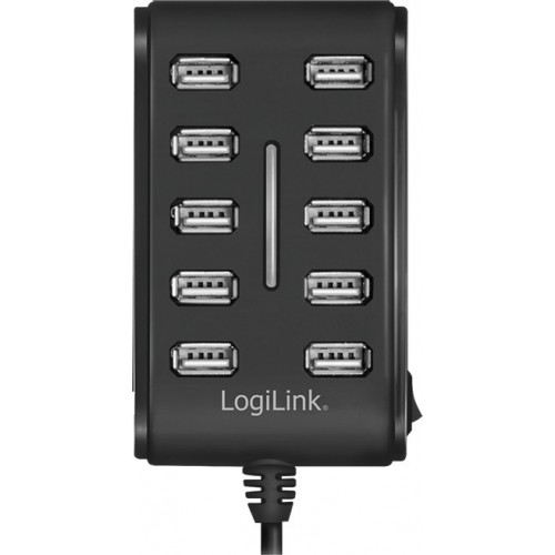 Το USB hub της εταιρείας LogiLink διαθέτει 10 θύρες εξόδου USB 2.0, κατάλληλες για να συνδέσετε ταυτόχρονα στον υπολογιστή, συσκευές όπως ποντίκια, στικάκια, εξωτερικούς σκληρούς δίσκους, πληκτρολόγια και πολλά άλλα. Για να λειτουργήσει, συνδέστε το σε μια θύρα USB του υπολογιστή σας. Εναλλακτικά, μπορείτε να το χρησιμοποιήσετε κι ως φορτιστή για συσκευές, συνδέοντας το σε μια πρίζα ρεύματος στον τοίχο ή πολύπριζο.