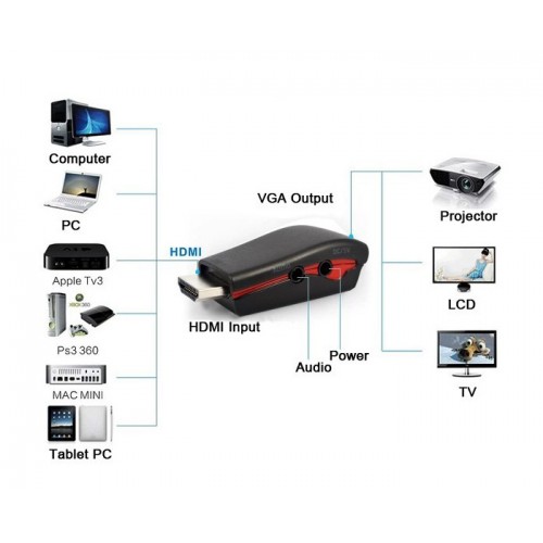 Υψηλής ποιότητας adapter της Powertech ο οποίος μετατρέπει το ψηφιακό σήμα HDMI σε αναλογικό VGA. Παρέχει ποιοτικό ήχο μέσω της θύρας 3.5mm και διαθέτει θύρα 5V DC για τροφοδοσία και φόρτιση, εάν η ισχύς της HDMI πηγής δεν είναι αρκετή.