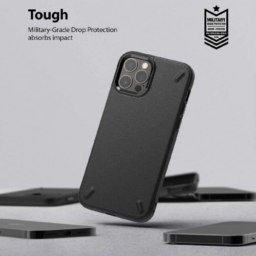 Θήκη TPU Ringke Onyx για Apple iPhone 12 / 12 Pro Μαύρο. Προστατέψτε το κινητό σας από καθημερινές φθορές, σκόνες και χτυπήματα με τέλεια κομψότητα και ανθεκτικότητα. Με εξαιρετικά εντυπωσιακό σχεδιασμό σε ματ ανάγλυφη ύφη αποτελεί την ιδανική θήκη για μη ολισθηρό και τέλειο κράτημα. Είναι κατασκευασμένη με συνδυασμό υλικών από θερμοπλαστική πολυουρεθάνη και προσαρμοσμένη με πολυανθρακικό πάνελ με δυνατότητα απορρόφησης κραδασμών ενισχύοντας την προστασία της συσκευής, πιστοποιημένη με MIL-STD 810G-516.6 USA Certified Military Grade Drop Protection. Έχει υπερυψωμένο περιμετρικό πλαίσιο για μέγιστη προστασία της οθόνης και της κάμερας και προσαρμοσμένες εσοχές για να τοποθετήσετε κορδόνι, εάν το επιθυμείτε Διαθέτει τις κατάλληλες εγκοπές και την ελαστικότητα για να εφαρμόζει άψογα επιτρέποντας την εύκολη πρόσβαση στην κάμερα, τις θύρες και όλες τις λειτουργίες της συσκευής. Η ασύρματη φόρτιση μπορεί να ενεργοποιηθεί χωρίς να χρειάζεται να την αφαιρέσετε. Συσκευασία Eco Package