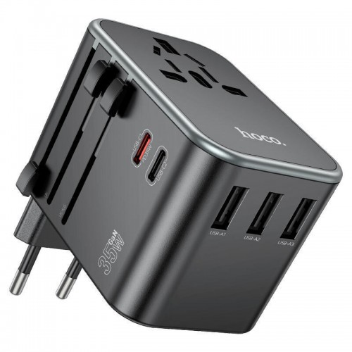 Φορτιστής Ταξιδίου Hoco AC19 Universal Converter US EU AU UK με 2 x USB C PD35W QC3.0 Μαύρο
