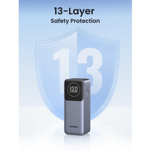Εξαιρετικά γρήγορη έξοδος 100W Light & Compact, 4,5 /1,8 / 1,8 ίντσες, 309 g Φόρτιση 3 συσκευών ταυτόχρονα 65W Υψηλή ταχύτητα, υποστηρίζει αμφίδρομη γρήγορη φόρτιση Ευρεία συμβατότητα: Η φορητή μπαταρία UGREEN μπορεί να χειριστεί μια ποικιλία πρωτοκόλλων φόρτισης, συμπεριλαμβανομένου του PD, PPS, QC, AFC, FCP και SCP