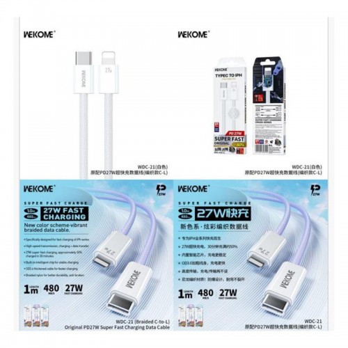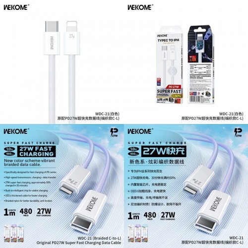 WK USB-C to Lightning Cable 27W Λευκό 1m (WDC-21L)