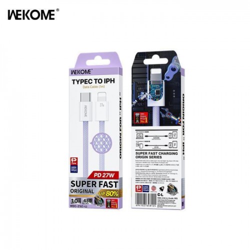 WK Wdc-21 Braided USB-C to Lightning Cable 27W Μωβ 1m