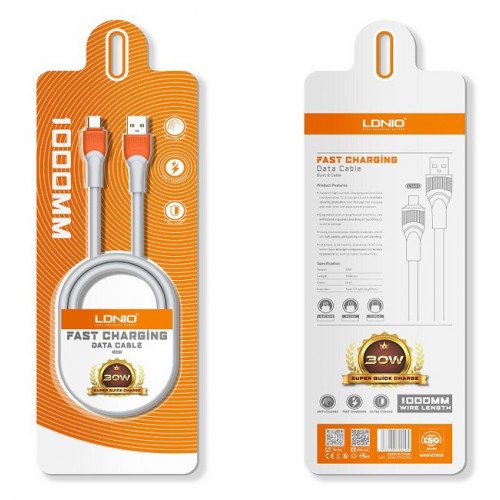 LDNIO καλώδιο Lightning σε USB LS601, 30W, 1m, γκρι