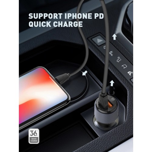 Υψηλής απόδοσης USB φορτιστής αυτοκινήτου της LDNIO, κατασκευασμένος από ανθεκτικό υλικό και συμβατός με όλες τις συσκευές που φορτίζουν μέσω USB θύρας. Διαθέτει θύρες εξόδου USB και USB-C, για ταυτόχρονη φόρτιση 2 συσκευών, με μέγιστη απόδοση 38W. Στην συσκευασία συμπεριλαμβάνεται καλώδιο φόρτισης USB σε USB-C. -USB & USB-C θύρα εξόδου με μέγιστη απόδοση 38W -υποστήριξη γρήγορης φόρτισης PD & QC3.0 -κομψός & μικρός σε μέγεθος -προστασία βραχυκυκλώματος, υπέρτασης, υπερθέρμανσης κ.α. Τεχνικά χαρακτηριστικά Είσοδος: DC 12-24V Έξοδος USB: 3.6-6/2.4A, 6-9V/2A, 9-12V/1.5A Έξοδος USB-C: 5V/2.4A, 9V/2.22A, 12V/1.67A Συνολική έξοδος: 38W Max Διαστάσεις: 2.5 x 6.7cm Μήκος καλωδίου: 1m Χρώμα: Μαύρος Περιεχόμενα συσκευασίας Φορτιστής τοίχου Καλώδιο φόρτισης USB-C σε USB-C