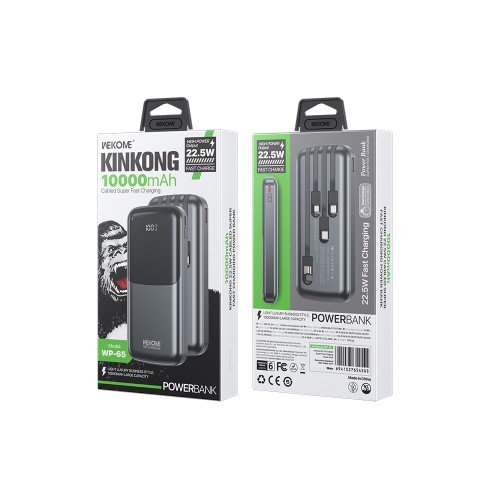 Πες αντίο στο άγχος της χαμηλής μπαταρίας! Το WK WP-65 με χωρητικότητα 10.000mAh διαθέτει ενσωματωμένα καλώδια, LED οθόνη ένδειξης και διπλές εξόδους USB/Type-C για ταυτόχρονη φόρτιση πολλών συσκευών. Κομψό, λεπτό και ιδανικό για κάθε σου μετακίνηση.